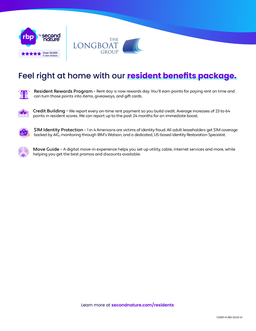 At Longboat Property Management, LLC we strive to provide an experience that is cost-effective and convenient. That’s why we provide a Resident Benefits Package (RBP) to address common headaches for our residents and provide must-have services for our renters. The Total Monthly Price of $1,995.00 includes rent, plus utility setup assistance, credit building and more at a rate of $15.00/ month, required with the rental. Residents have the option to personalize some components during onboarding, which may increase or decrease the monthly amount. In addition to RBP, we provide access to liability insurance that meets your needs. More details upon application. More details upon application.
